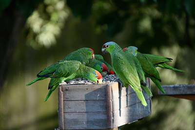 psitácidas; la mayoría amenazadas como la guacamaya escarlata. El
